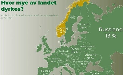 et av landene i Europa med relativt lite areal som dyrkes, dvs 3% av arealet.